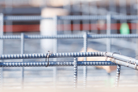 「鉄筋」とは、建物や橋梁(橋)などのコンクリートで覆われた施設の骨組みのことです。